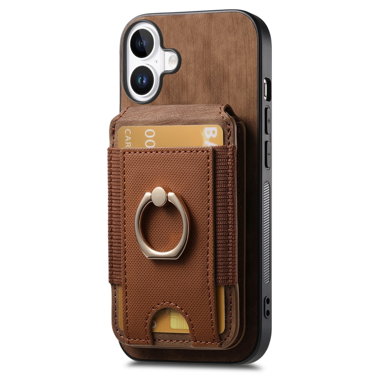 Funda de Cuero para iPhone 16 con Soporte Magnético Divisible y Tarjetero (Marrón)