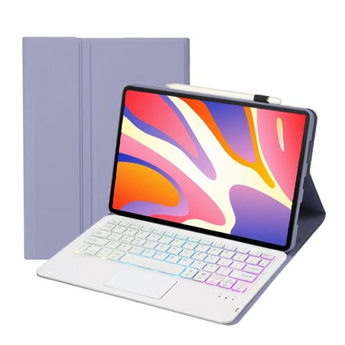 Funda de Cuero para Tableta Huawei Matepad Se 11 (2024) Ah21-As con Teclado Bluetooth Retroiluminado y Panel Táctil (Blanco Lavanda)