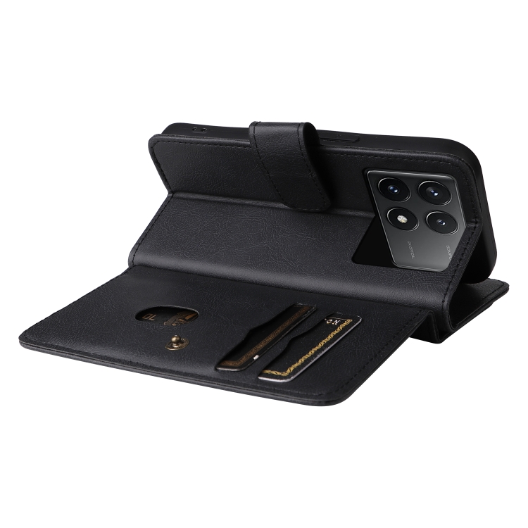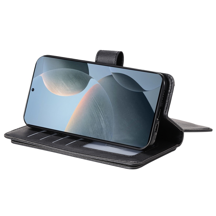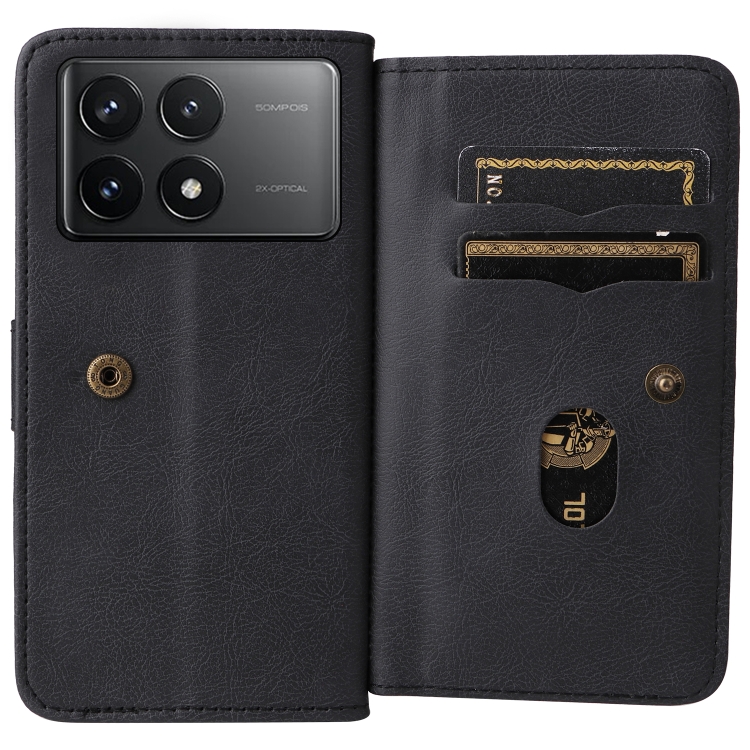 Funda de Cuero para Teléfono con 10 Ranuras para Tarjetas y Billetera Multifunción para Xiaomi Poco F6 Pro (Negro)
