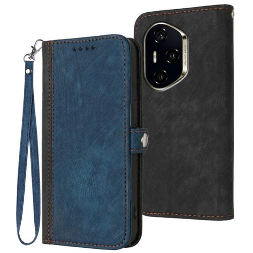 Funda de Cuero para Honor 300 Pro y Honor 300 Ultra con Correa Plegable y Hebilla Lateral Doble (Azul Real)