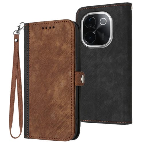 Funda de Cuero para Teléfono con Correa de Mano y Hebilla Lateral Doble Plegable para Vivo Iqoo Z9S Pro/T3 Pro 5G (Marrón)