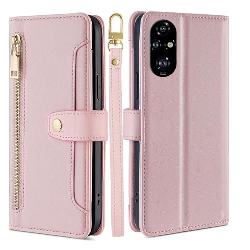 Funda de Cuero para Honor 200 Pro 5G con Cremallera y Textura de Oveja (Rosa)