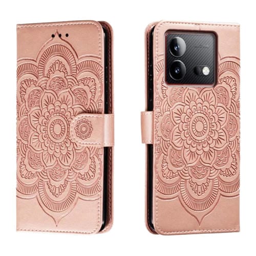 Funda de Cuero para Teléfono con Estampado de Mandala y Sol para Vivo Iqoo Neo8 (Oro Rosa)