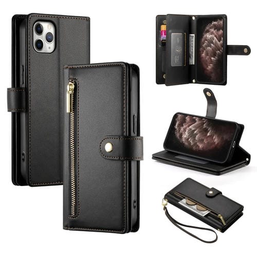 Funda de Cuero para Teléfono iPhone 11 Pro Max con Nueve Ranuras y Cremallera (Negro)