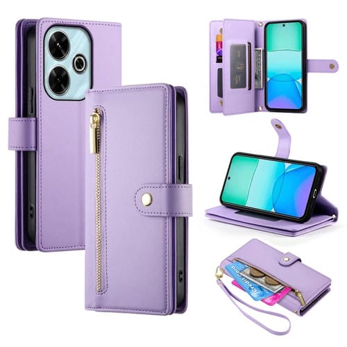Funda de Cuero para Teléfono con Nueve Ranuras para Tarjetas y Cremallera para Redmi 13 (Morado)