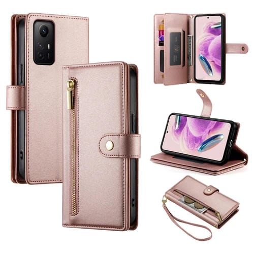 Funda de Cuero para Teléfono con Nueve Ranuras para Tarjetas y Cremallera para Redmi Note 12S 4G/Note 11 4G (Rosa)