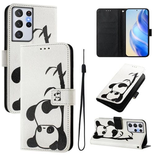 Funda de Cuero para Teléfono Samsung Galaxy S21 Ultra 5G Patrón Dibujo Artístico (Panda)