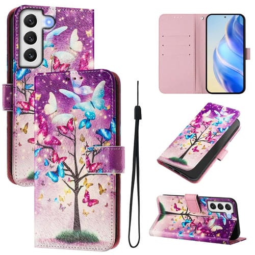 Funda Cuero para Teléfono Samsung Galaxy S22+ 5G Patrón Dibujo Artístico Rama de Mariposa