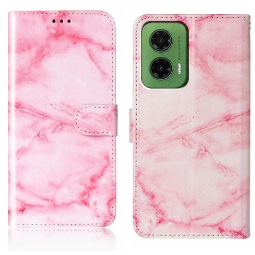 Funda de Cuero para Motorola Moto G35 con Patrón Mármol y Dibujo de Colores (Mármol Rosa)
