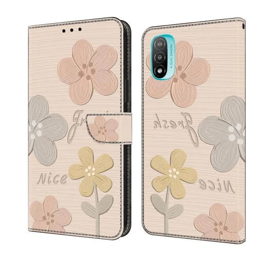 Funda de Cuero Pintada a Mano para Motorola Moto E20 (Flores Beige)
