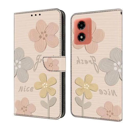 Funda de Cuero Pintada a Mano para Motorola Moto G04 (Flores Beige)