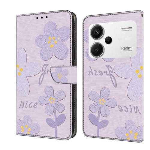 Funda de Cuero Pintada a Mano para Redmi Note 13 Pro+ (Flores de Color Morado Oscuro)