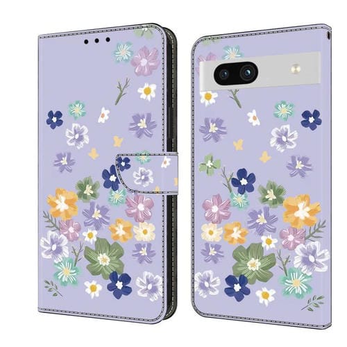 Funda de Cuero Pintada a Mano para Google Pixel 7 (Floral Morado)