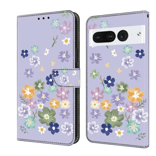 Funda de Cuero Pintada a Mano para Google Pixel 7 Pro (Floral Morado)