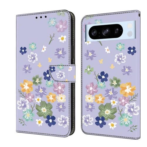 Funda de Cuero Pintada a Mano para Google Pixel 8 Pro (Floral Morado)