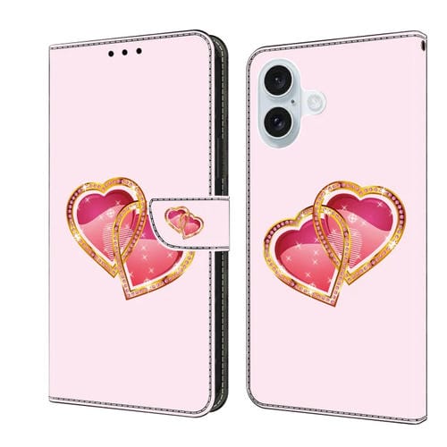 Funda de Cuero Pintada con Cristales para iPhone 16 Plus (Love Peach)