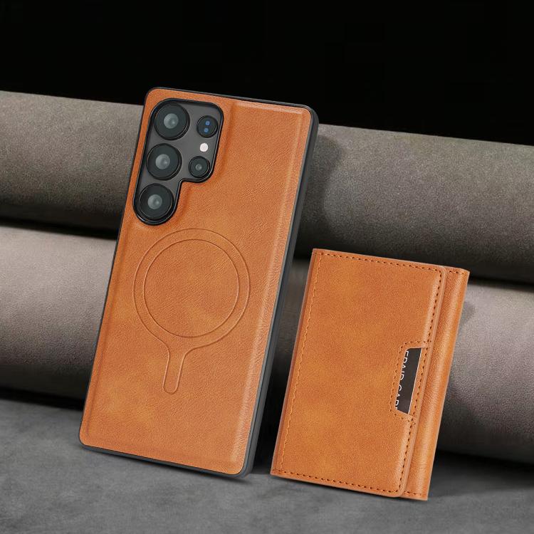 Funda de cuero plegable triple Kalebol con imán fuerte MagSafe para Samsung Galaxy S24 Ultra 5G (marrón)