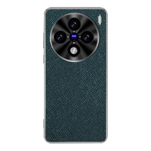 Funda de Cuero Pu con Textura Cruzada y Borde Plateado para Vivo X100S Pro (Verde Oscuro)
