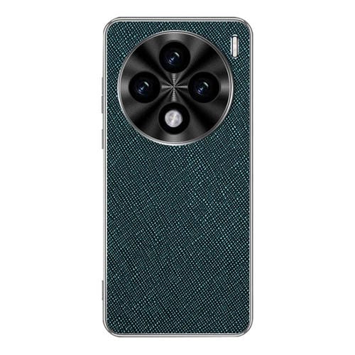 Funda de Cuero Pu con Textura Cruzada y Borde Plateado para Vivo X100S (Verde Oscuro)