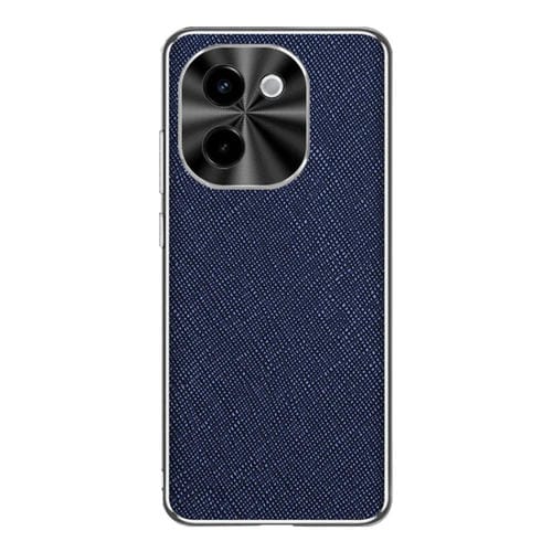 Funda de Cuero Pu con Textura Cruzada y Borde Plateado para Vivo Y200 (Azul Zafiro)