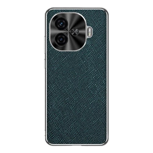 Funda de Cuero Pu con Textura Cruzada y Borde Plateado para Vivo Y200 Gt (Verde Oscuro)