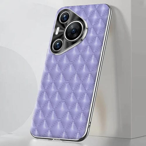 Funda de Cuero Pu con Textura Rómbica y Borde Plateado para Huawei Pura 70 (Morado)
