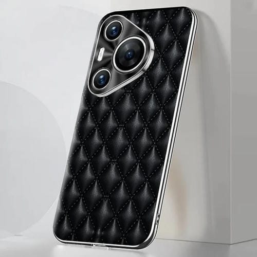 • 1x Funda Cuero PU Huawei Pura 70 Textura Rómbica Borde Plateado (Negra)