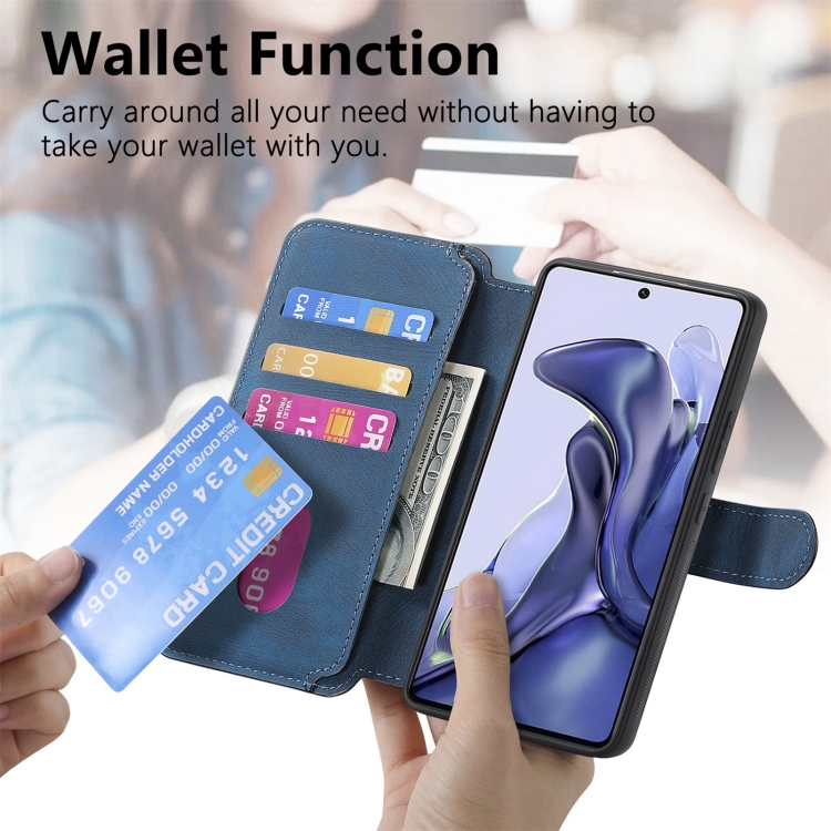 Funda Neo Magsafe Rfid Antirrobo de Cuero Retro para Xiaomi Mi 11T / 11T Pro 5G (Azul)