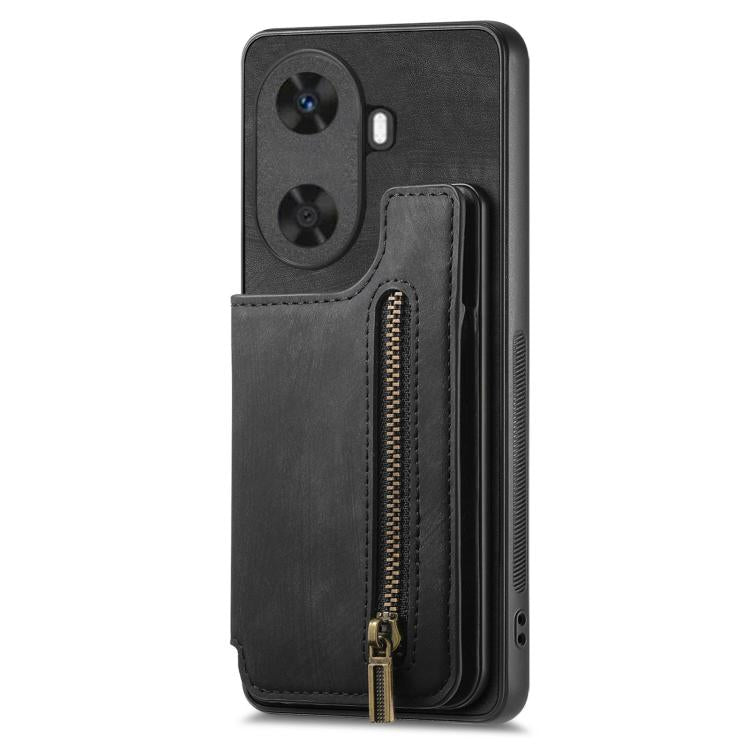 Funda de Cuero Retro con Cremallera para Huawei Enjoy 60 (Negra)