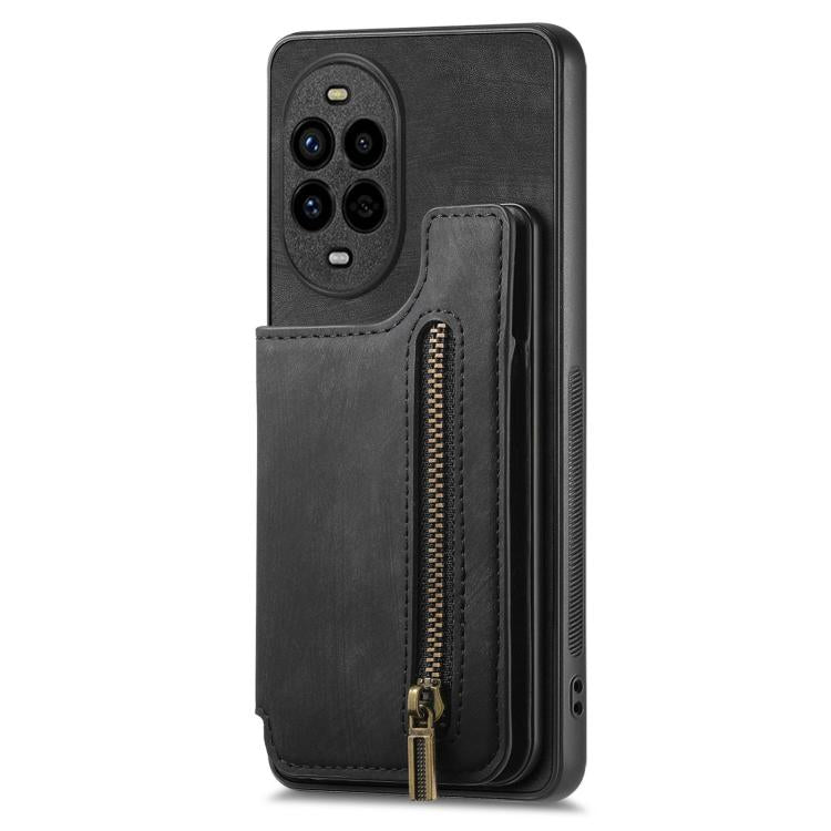 Funda de Cuero Retro con Cremallera para Huawei Nova 13 Pro (Negra)