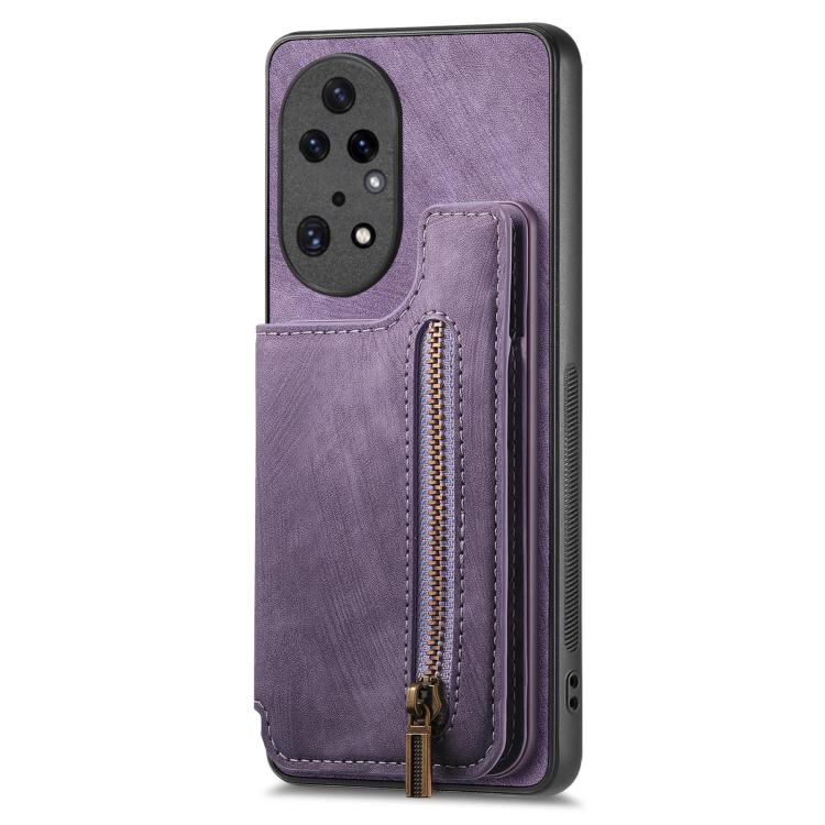 Funda de Cuero Retro con Cremallera para Huawei P50 Pro (Morado)