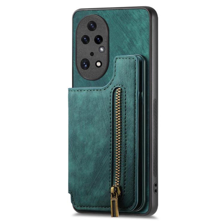 Funda de Cuero Retro con Cremallera para Huawei P50 Pro (Verde)