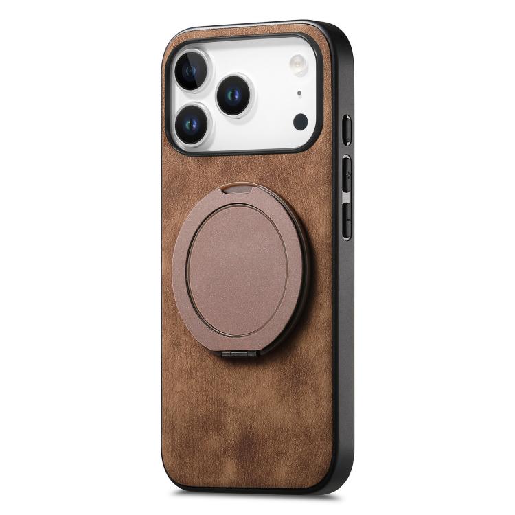 Funda de cuero retro con soporte giratorio redondo para iPhone 17 Pro (marrón)