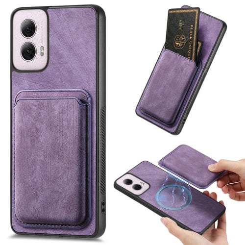 Funda Cuero Retro con Tarjetero y Cierre Magnético para Motorola Moto G Power 5G (2024) (Morado)