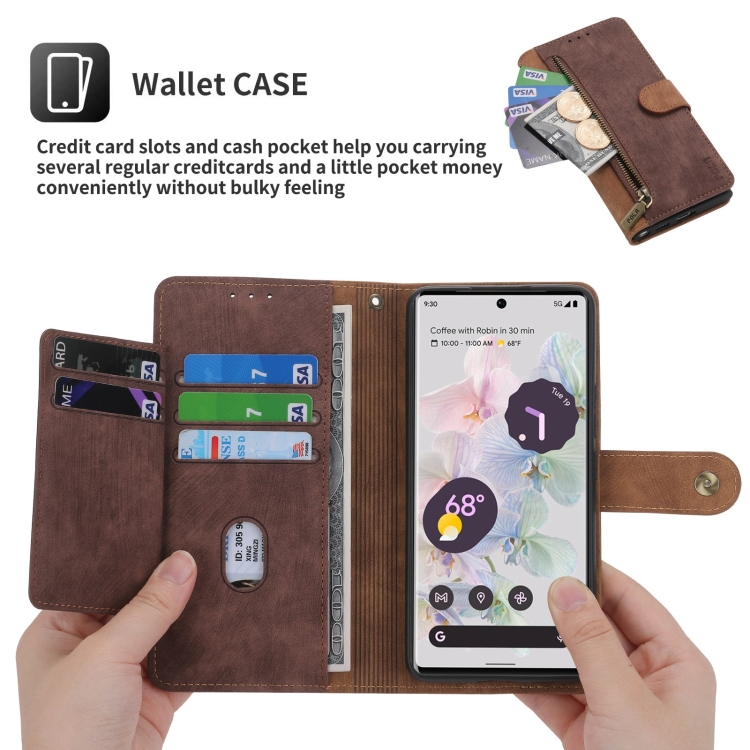 Funda de Cuero Rfid con Cremallera para Google Pixel 7 Pro Pola (Marrón Burdeos)