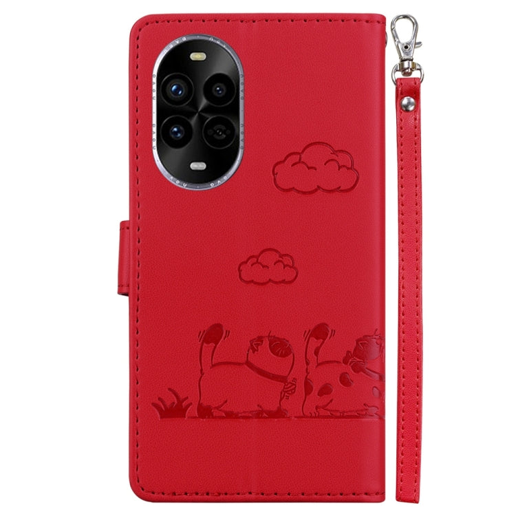 Funda de Cuero Rfid para Huawei Nova 13 Pro (Roja) con Diseño de Gatos