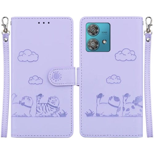 Funda de Cuero Rfid para Motorola Edge 40 Neo con Diseño de Gatos (Morado)
