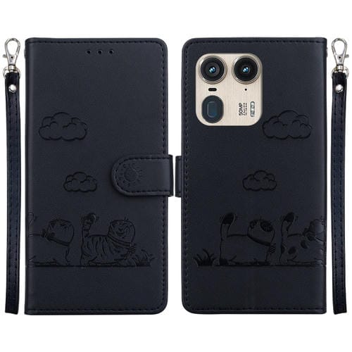 Funda de Cuero Rfid para Motorola Edge 50 Ultra con Diseño de Gatos (Negra)