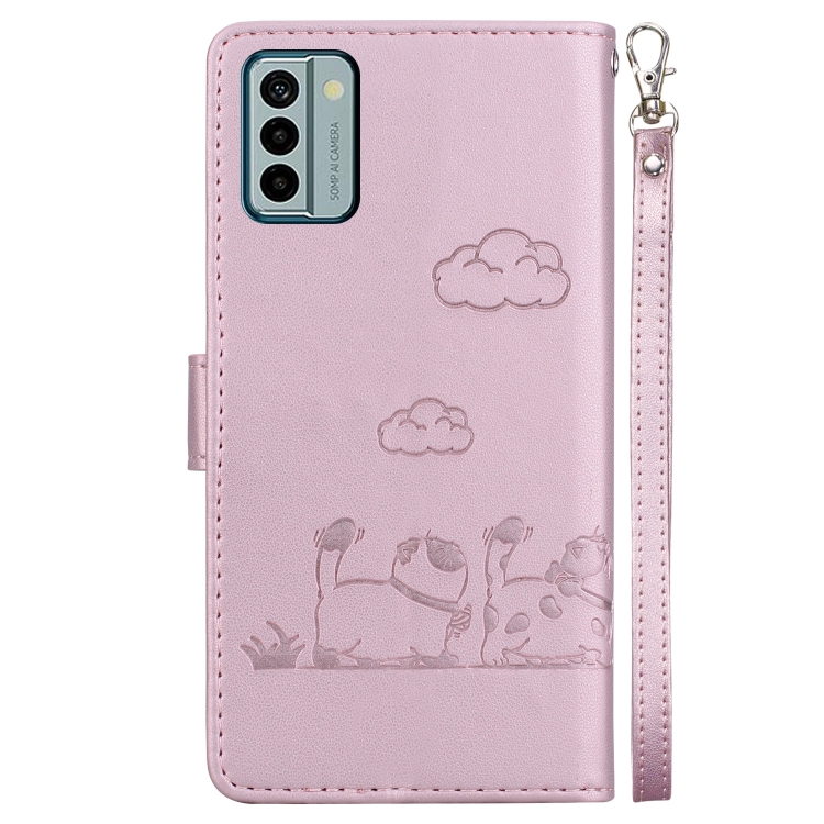 Funda de Cuero Rfid para Nokia G22 con Diseño de Gatos (Oro Rosa)