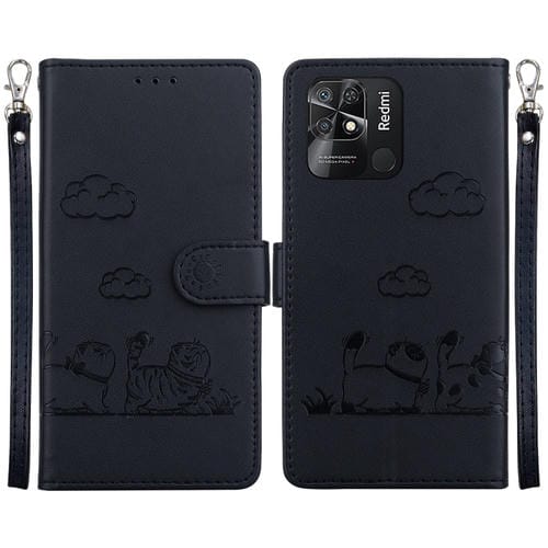Funda de Cuero Rfid con Diseño de Gatos para Redmi 10C (Negra)