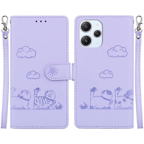Funda de Cuero Rfid con Diseño de Gatos para Redmi 12 4G/5G (Morada)
