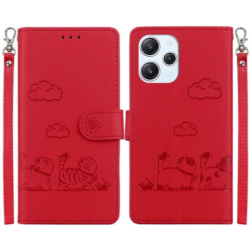 Funda de Cuero Rfid con Diseño de Gatos para Redmi 12 4G/5G (Roja)