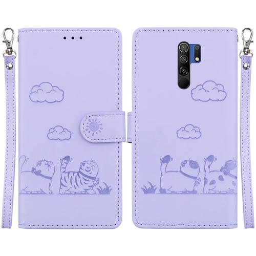 Funda de Cuero Rfid con Diseño de Gatos para Redmi 9/9 Prime (Morado)