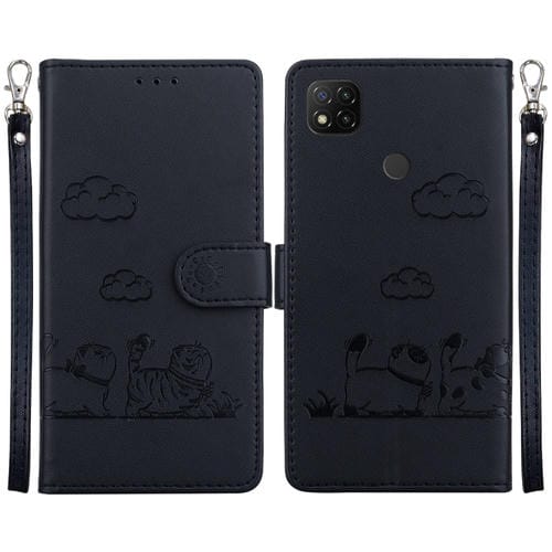 Funda de Cuero Rfid con Diseño de Gatos para Redmi 9C/9 Activ (Negra)