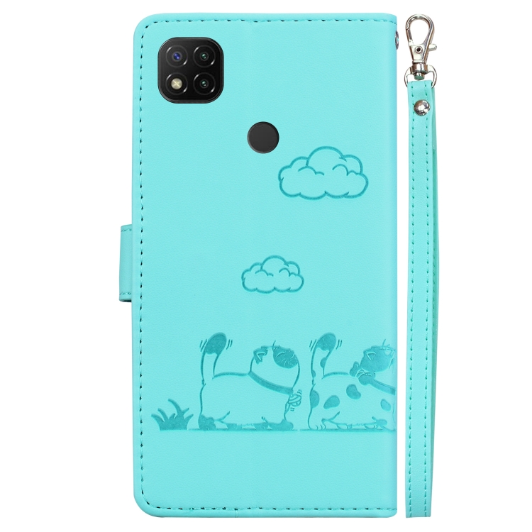 Funda de Cuero Rfid con Diseño de Gatos para Redmi 9C/9 Activ (Verde)
