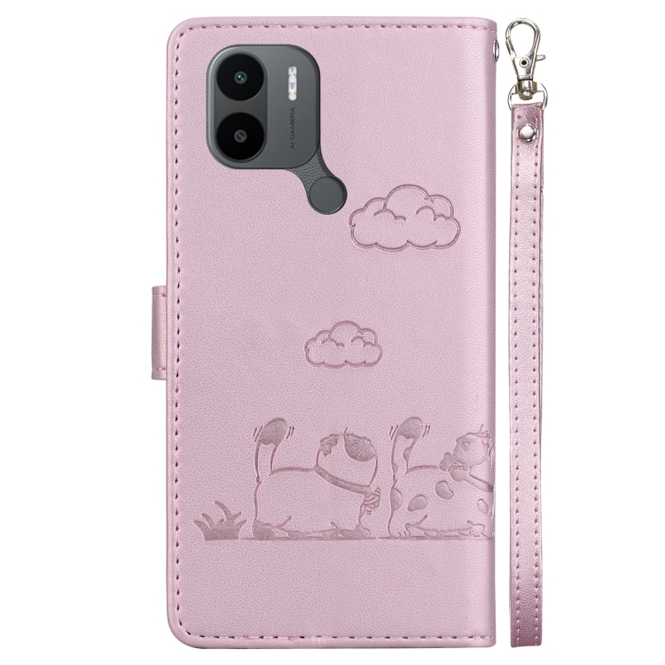 Funda de Cuero Rfid con Diseño de Gatos para Redmi A1+ 4G Global (Oro Rosa)