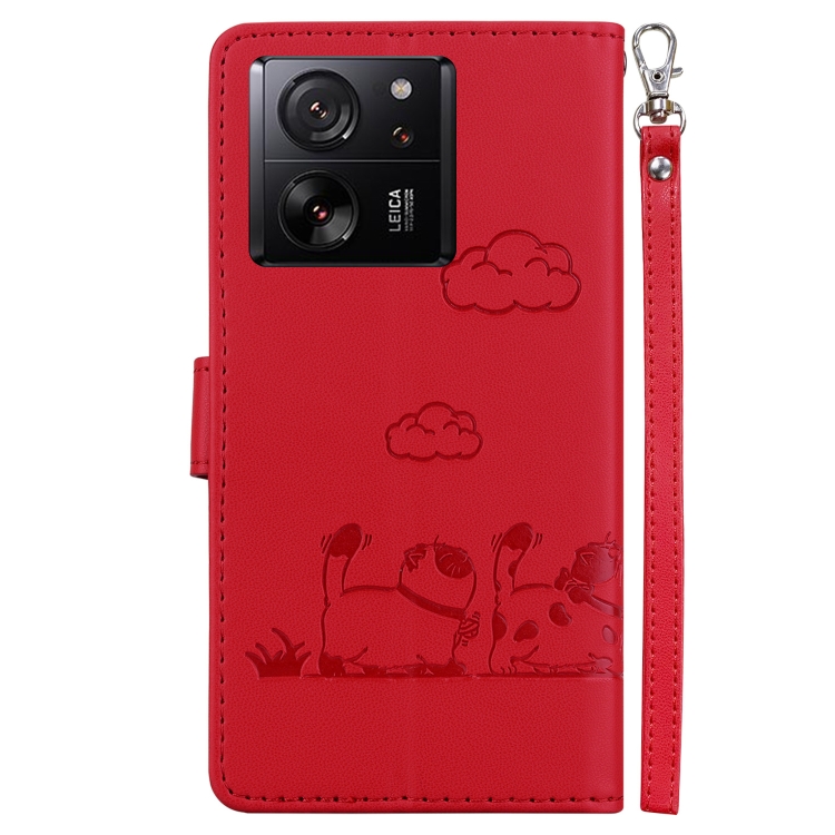Funda de Cuero Rfid con Diseño de Gatos Lindos para Redmi K60 Ultra (Roja)