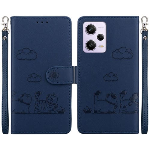 Funda de Cuero Rfid con Diseño de Gatos Lindos para Redmi Note 12 Pro 5G (Azul)