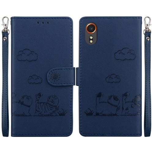 Funda Cuero Rfid Samsung Galaxy Xcover 7 Diseño Gatos (Azul)