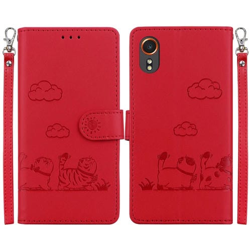 Funda Cuero Rfid Samsung Galaxy Xcover 7 Diseño Gatos (Roja)